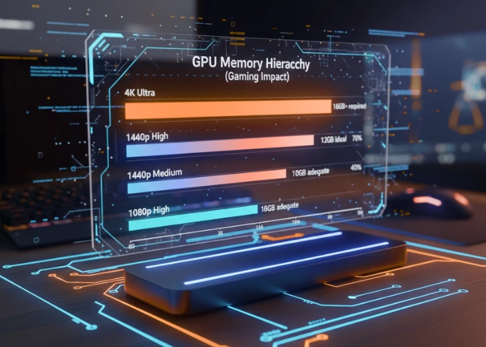 VRAM capacity matters more than ever with modern games. 8GB struggles at 1440p in newer titles with high texture settings. 10GB works for most current games but feels tight for longevity. 12GB is the comfortable minimum for 1440p gaming while 16GB and above futureproofs for 4K.