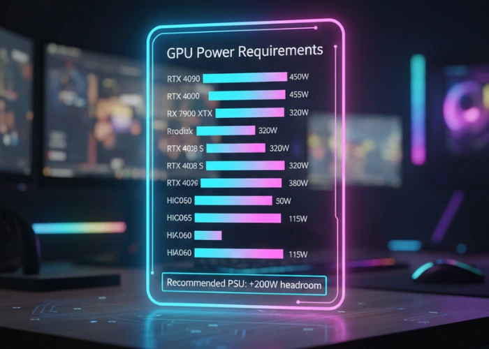 Modern GPUs pack impressive efficiency improvements over previous generations. The RTX 4060 and 4070 use less power than their 30-series equivalents while performing better. This matters for total system power draw and heat output.
