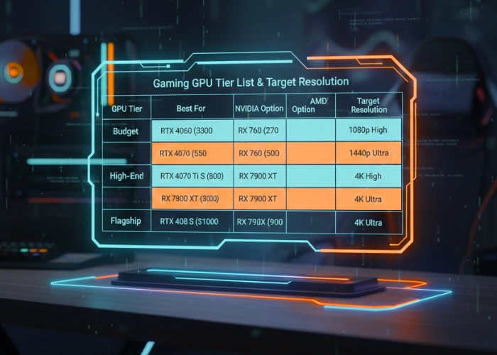 Buying a high-end GPU for a 1080p 60Hz monitor wastes money. Match your graphics card to your display capabilities. A 1440p 165Hz monitor pairs beautifully with the RTX 4070 or RX 7800 XT.