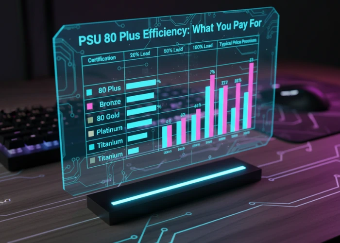The 80 Plus certification system rates efficiency at different load levels. Bronze units hit 82-85% efficiency while Titanium reaches 90-94%. Higher efficiency means less heat generation and lower electricity bills over time. For a gaming system pulling 400-500 watts the difference adds up to maybe $15 yearly.